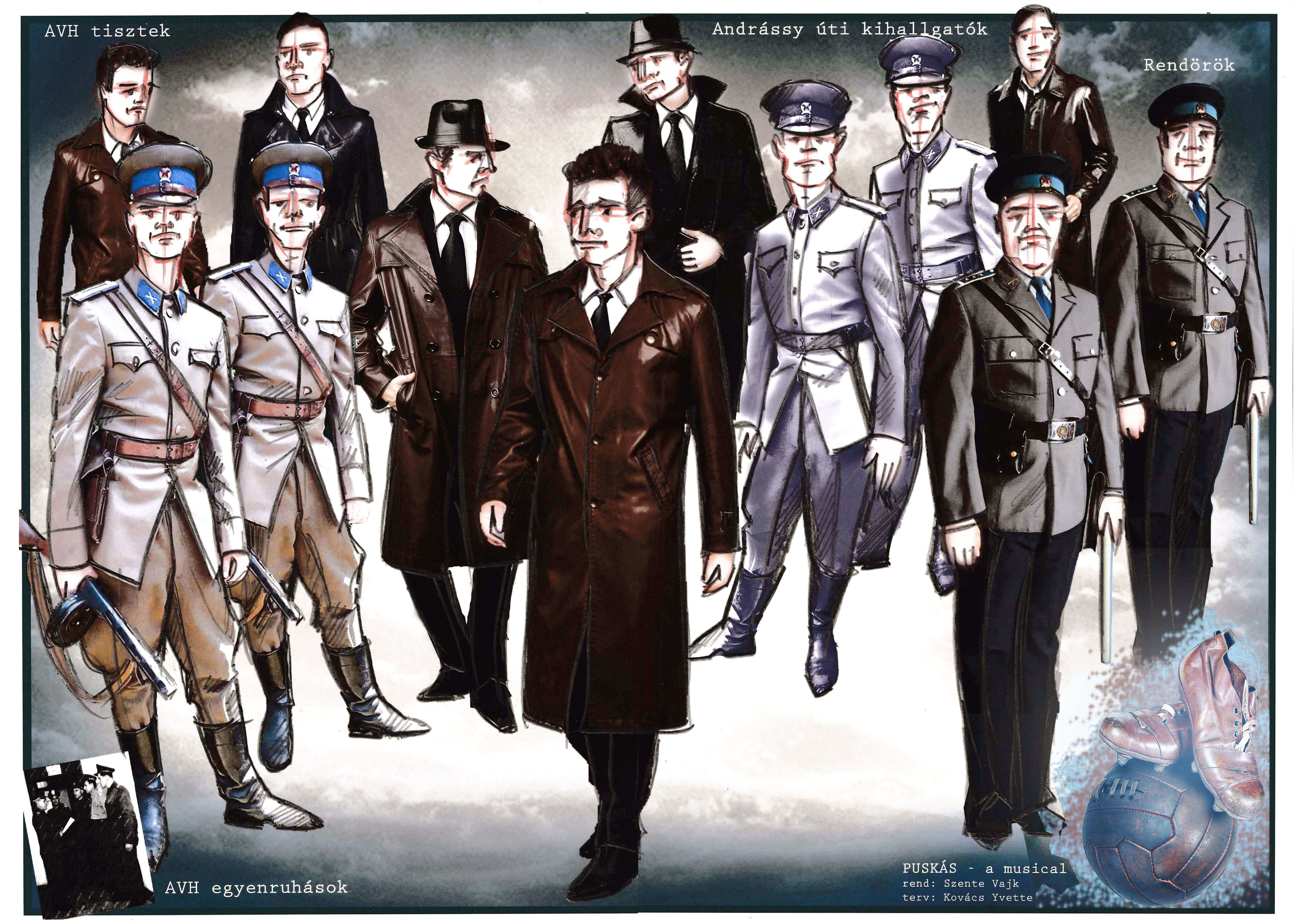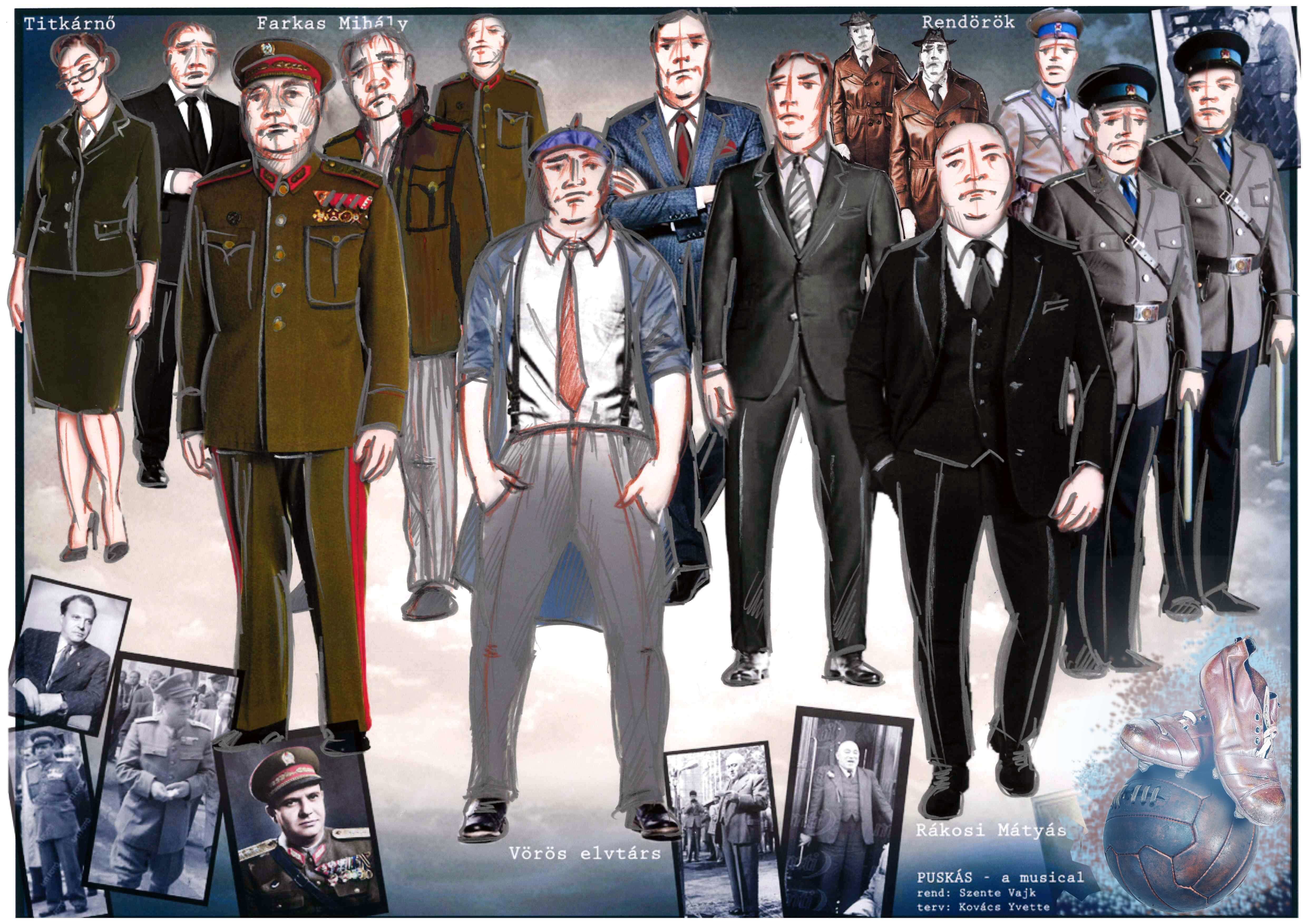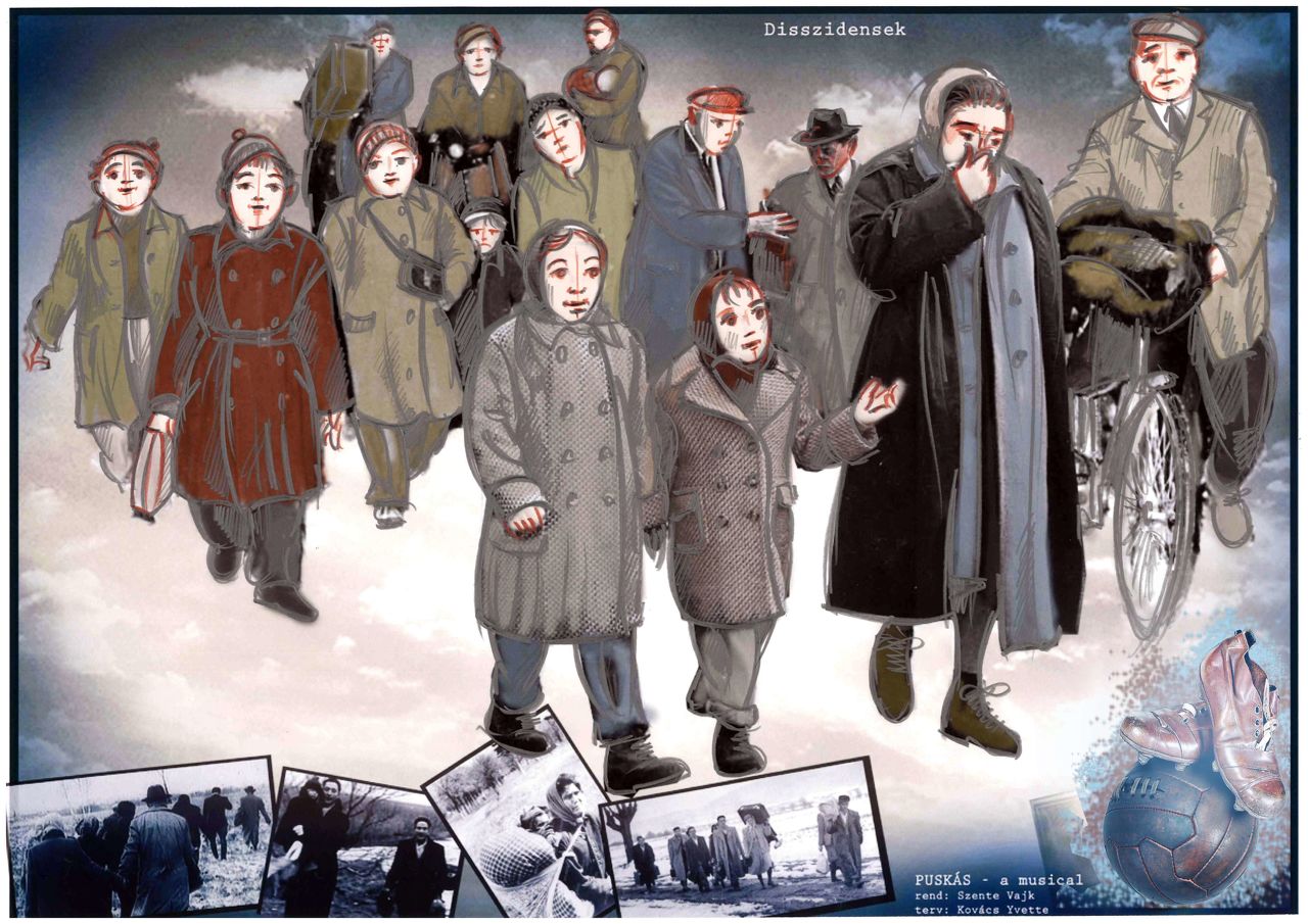 A Puskás Ferencről és az Aranycsapatról szóló musical szereplőinek jelmeztervezése többszörösen kreatív feladat volt. A kor divatjának megjelenítése (1930-1950-es évek), mégis a formák, szabások és anyagok mai átértékelése jelentette a főbb irányvonalat. Az előadásban felvonuló közel százfős szereplőgárda mindegyike többször öltözik, ezért a jelmezek mennyisége önmagában hatalmas munkát igényelt. A színészek két személy kivételével létező személyt jelenítenek meg, a szereplők tehát valós személyek, akik külön szokásokat, ízlést és öltözeteket tudnak maguk mögött. A fennmaradt képi anyagokat is tanulmányozva alkottuk meg a terveket, hogy az egykori személyiségekhez illően, a finom részleteket is figyelembe véve a nézők felismerjék a karaktereket. A darab elengedhetetlen része, hogy jellegzetes öltözékük alapján felismerjék és megismerjék az akkori ruházatuk alapján az Aranycsapat, a külföldi csapatok tagjait, a politikusokat, az akkori rendszer és hatalom kiszolgálóit. A darabban felvonultatott mezek tervezése, és korhű mégis modern megjelenítése az egyik legizgalmasabb időutazás, alapjául az adott csapatok szín- és motívumvilága szolgált, a minőség és a forma viszont a mai sztárfutballisták öltözeteit idézi.